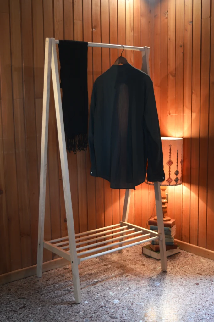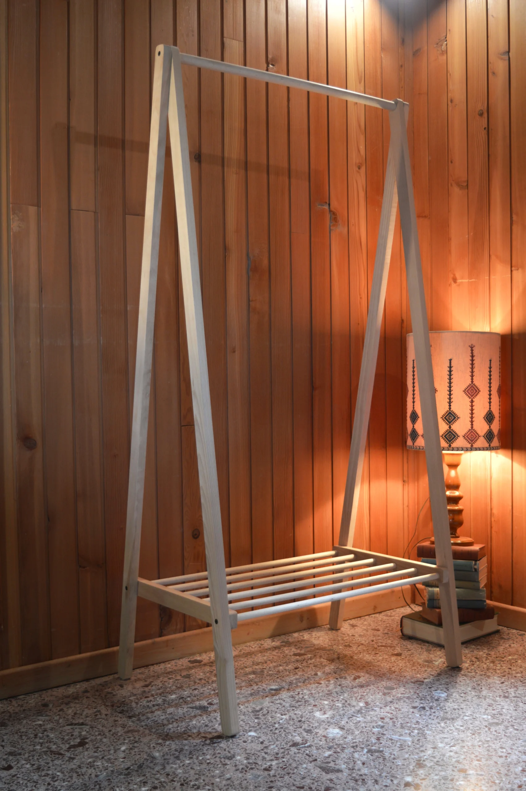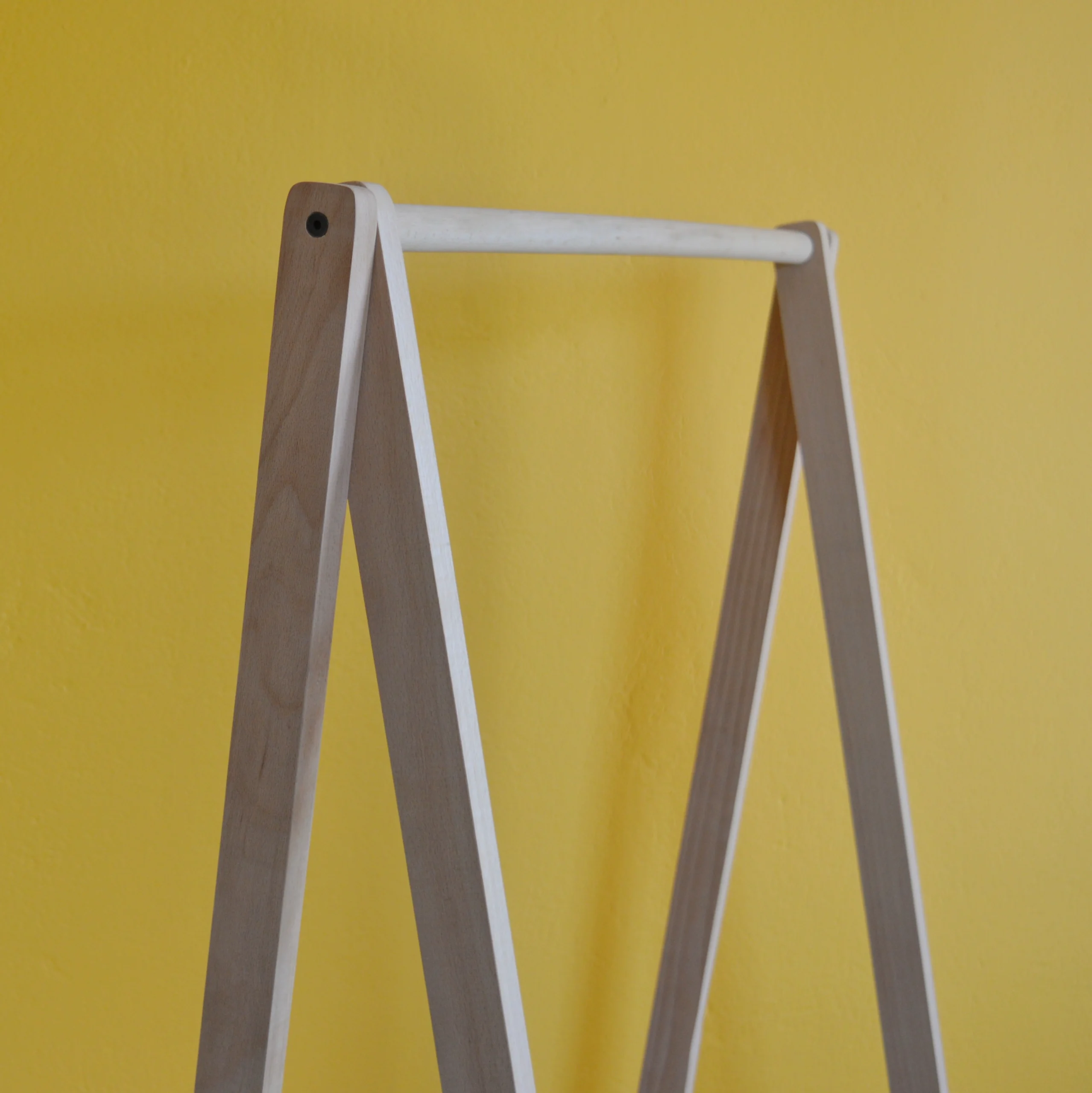 Crafted from solid beech wood with a natural finish, this floor coat rack combines simplicity and functionality in a refined design. Its clean lines and warm wooden tone add an elegant touch to any space. Ideal for the entryway, bedroom, or any area where practical storage meets timeless style.