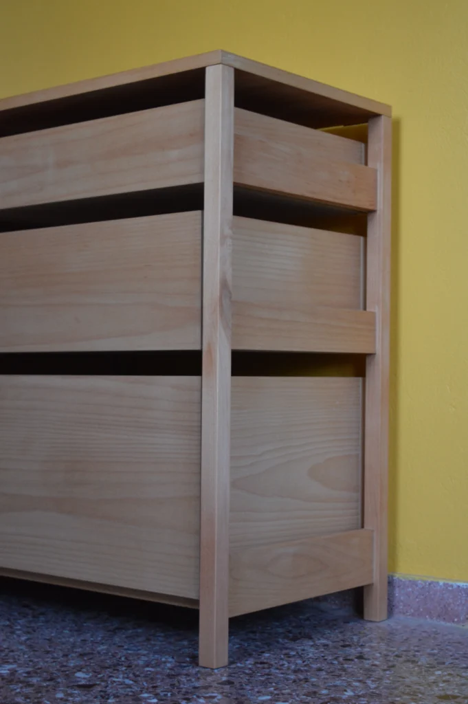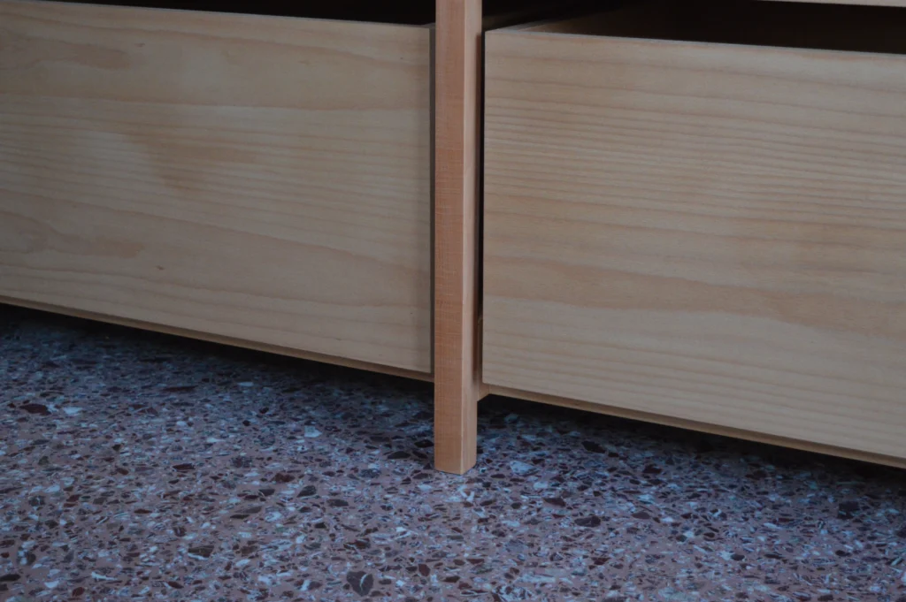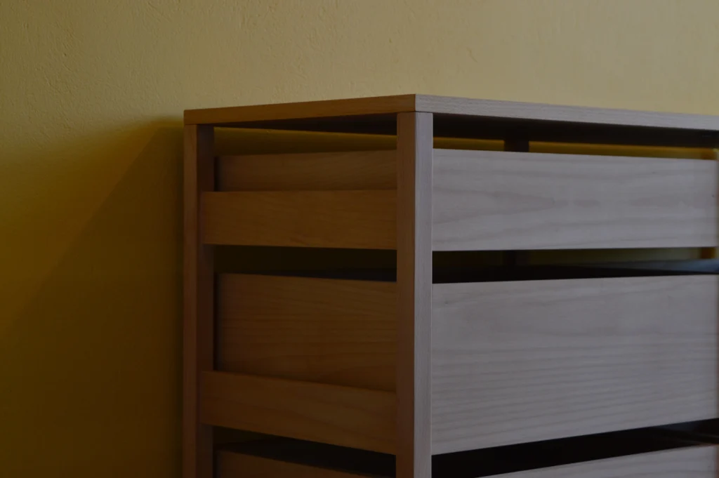 It conveys a light and effortless presence, suitable for kitchens, bedrooms, or bathrooms. Its minimalist style and natural finish—crafted from solid beech wood and beech veneer—bring a sense of calm to any environment. Choose whether to mount it on the wall or place it freestanding in the room.