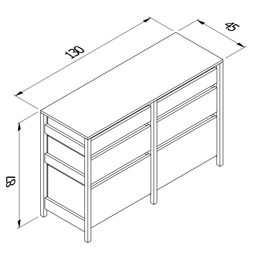 Standalone storage unit with six drawers, designed for maximum versatility.