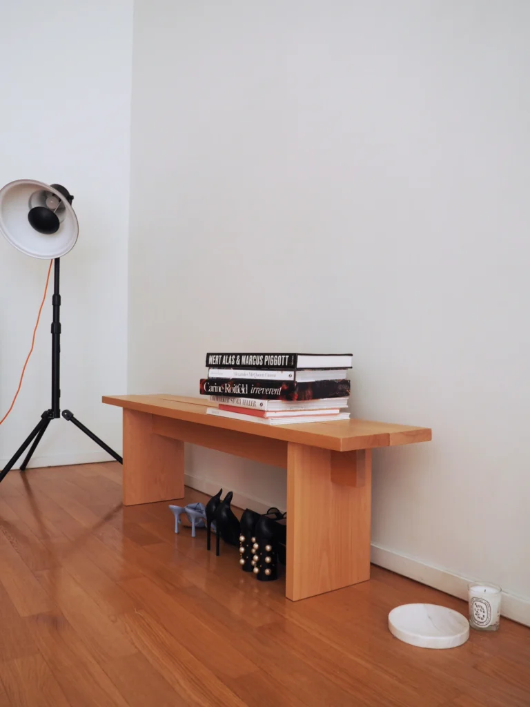 cases collections Contact cases collections Contact 09. Spolia bench Bench made of solid beech wood in a Natural finish.Minimal and highly versatile — use it as a seating bench or as a surface for displaying and placing items. Product Dimensions • Width: 160 cm • Depth: 34 cm • Height: 45 cm Instagram TikTok © 2025 SpoliaWorkshop